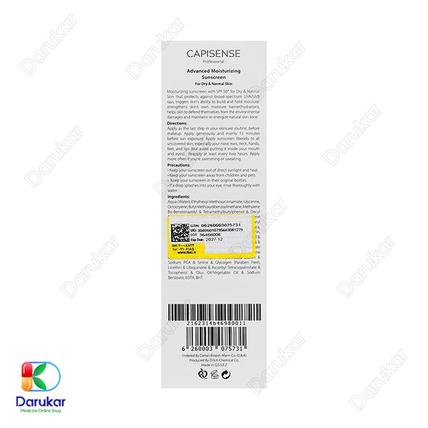 ضد آفتاب و آبرسان پوست خشک و معمولی کپیسنس (Capisens SPF50+ Hydrating Sunscreen for Dry and Normal Skin) با ترکیبات علمی و فرمولاسیون پیشرفته، محافظتی کامل از پوستهای خشک و نرمال در برابر اشعههای UVA و UVB فراهم میکند و همزمان رطوبت و تغذیه عمقی پوست را تأمین مینماید. خرید این محصول از داروخانه آنلاین داروکار امکان دسترسی سریع به کالای اصل، اورجینال و با کیفیت را فراهم میآورد و اطلاعات کاملی درباره ترکیبات، روش مصرف و مزایای علمی محصول در اختیار کاربران قرار میدهد.