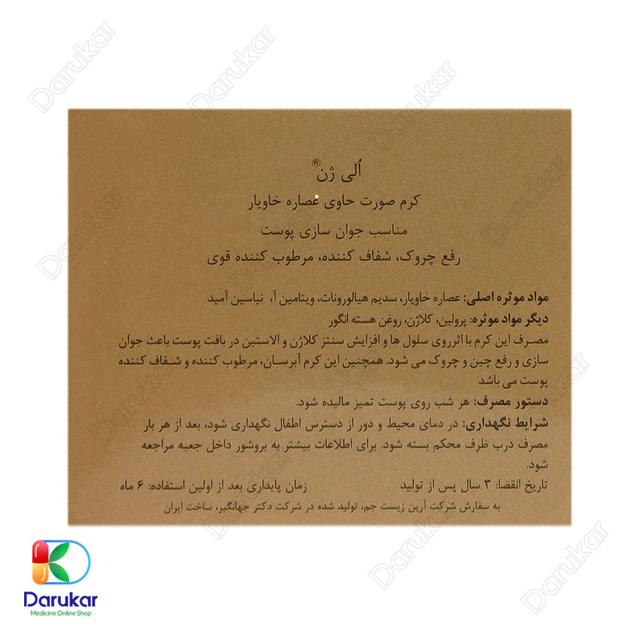 کرم خاویار ضد چروک و آبرسان الی ژن یک محصول چند منظوره منحصر به فرد و لوکس می باشد که پوست را بازسازی نموده، استحکام پوست را افزایش داده و از افتادگی پوست جلوگیری میکند.