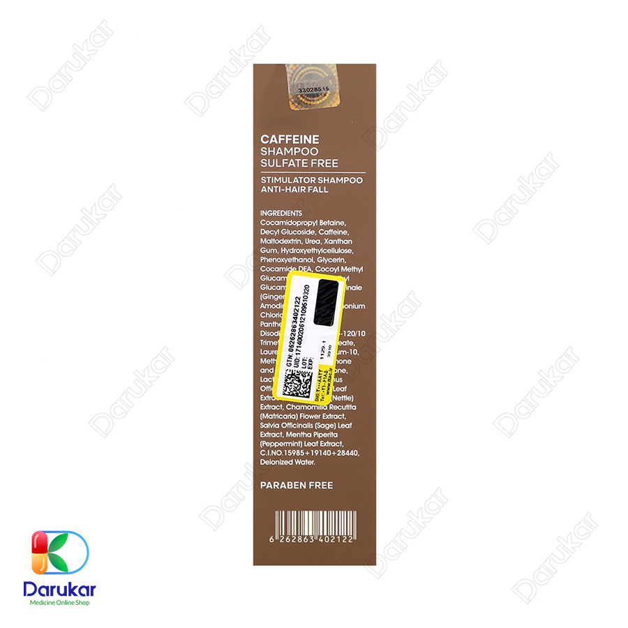 - این محصول فاقد سولفات است، اما برای افراد با حساسیت شدید به عصارههای گیاهی، توصیه میشود ابتدا مقداری از شامپو را روی پوست بازو تست کنید.