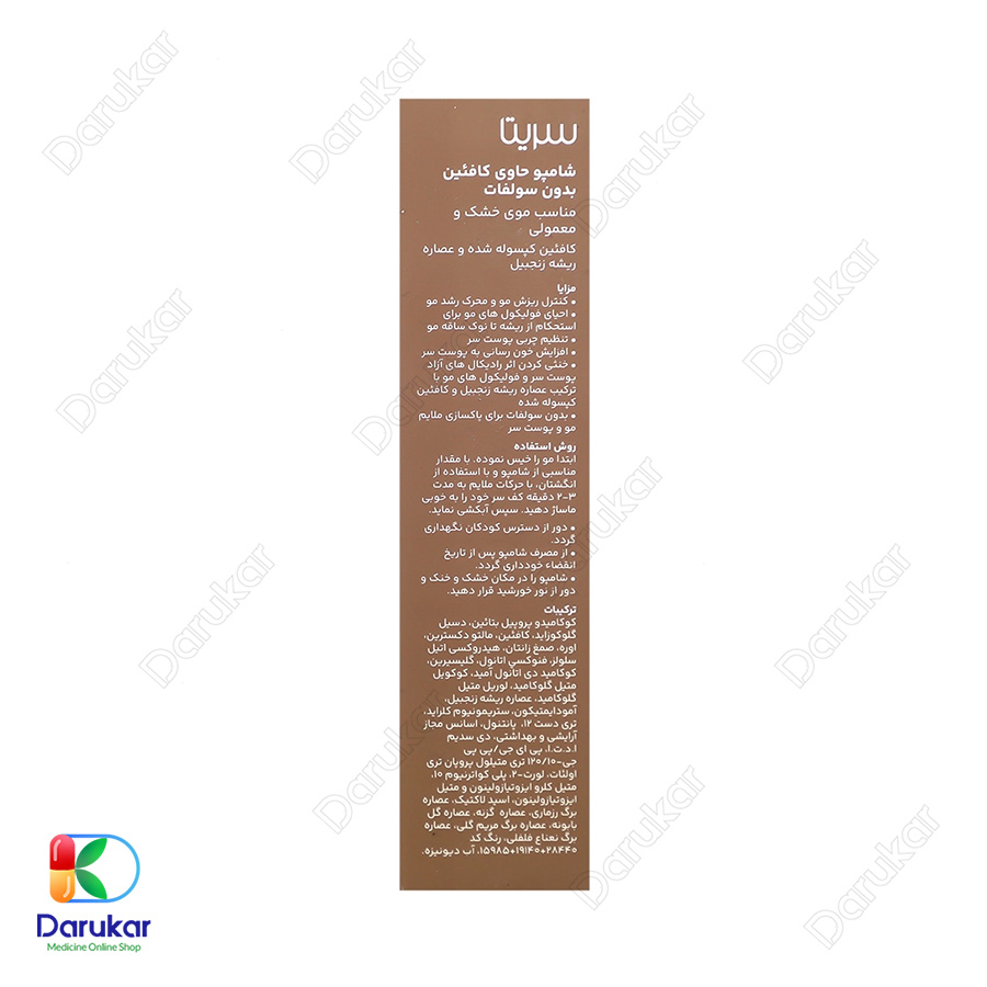 خرید و قیمت شامپو کافئین موهای خشک و معمولی سریتا از داروخانه آنلاین داروکار