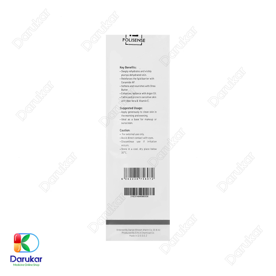 کرم مرطوب کننده پوست خشک فولی سنس بافتی فوقالعاده مغذی و در عین حال جذبی سریع دارد؛ پس از استفاده پوست حجیمتر، نرمتر و کمتر دهیدراته به نظر میرسد و لایه محافظتی که روی پوست شکل میگیرد تبخیر آب را کاهش میدهد و از تشدید خشکی جلوگیری میکند.