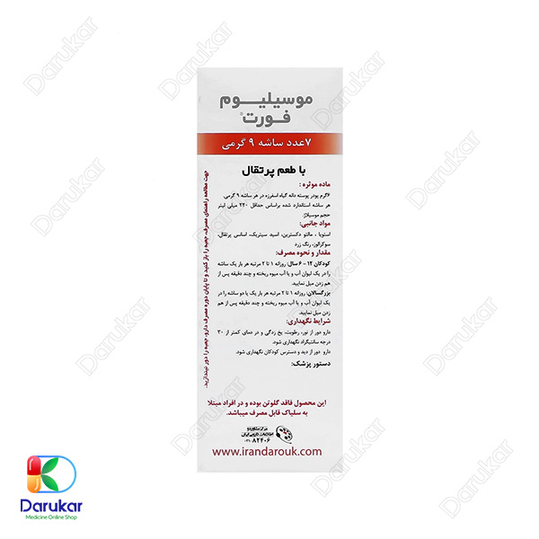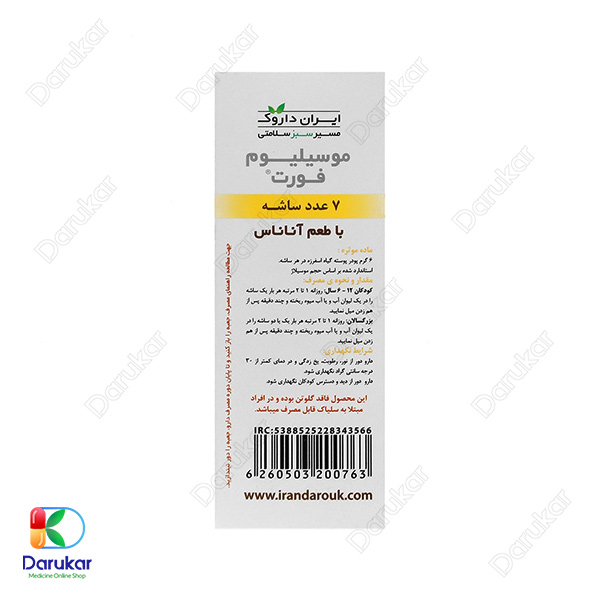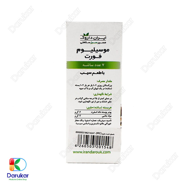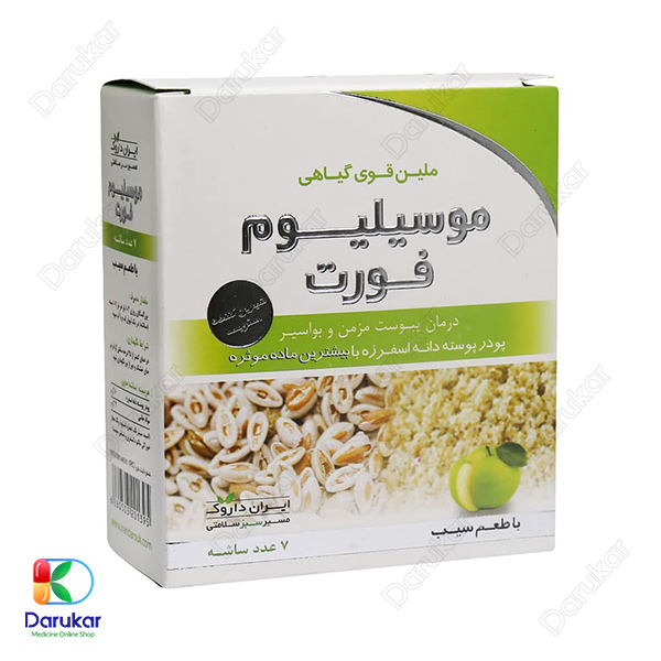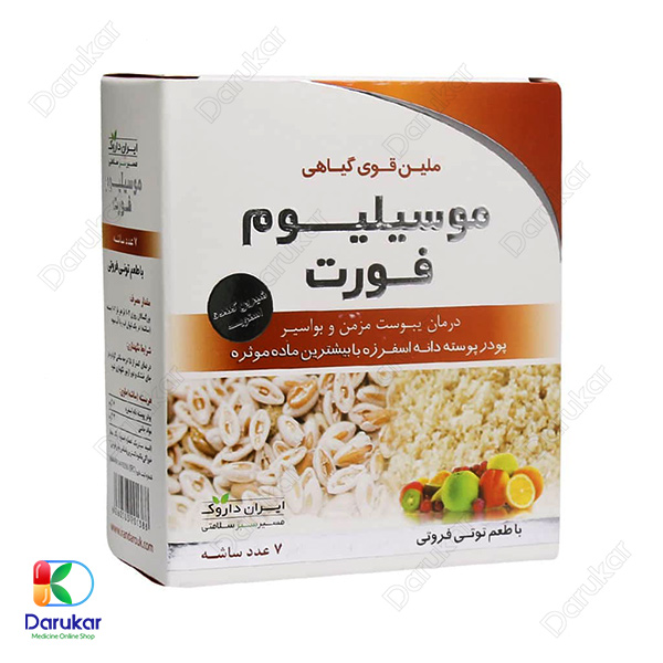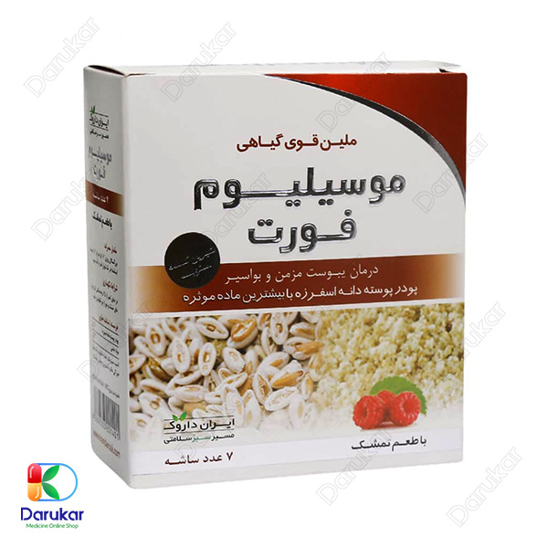 ساشه موسیلیوم فورت ایران داروک یک مکمل ملین کاملاً گیاهی و طبیعی است که از پوسته دانه گیاه اسفرزه تهیه شده و برای رفع مشکلات گوارشی، یبوست مزمن، سندرم روده تحریکپذیر، تنگی آنورکتال و حتی کاهش سطح کلسترول در خون مورد استفاده قرار میگیرد. این محصول در طعمهای مختلف، مصرف دلپذیر و آسانی دارد و به دلیل فرمولاسیون بدون قند، برای افراد با حساسیت به قند نیز مناسب است. استفاده از این ساشه، به دلیل اثر ملین طبیعی و افزایش حجم مدفوع، یکی از ایمنترین روشهای درمان یبوست محسوب میشود.