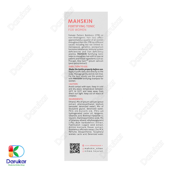 در نهایت، تونیک تقویتکننده و کنترلکننده ریزش موی بانوان مه اسکین (Mahskin Fortifying And Anti Hair Loss Tonic For Women) با ترکیبات گیاهی اثرگذار مانند عصاره نخود سبز، د-پانتنول، عصاره رزماری و زینک پیسیای، جریان خون کف سر را افزایش داده، فولیکولها را تقویت میکند و رشد موهای جدید را تحریک مینماید. این تونیک تخصصی، مناسب خانمها با ریزش مو غیرآندروژنیک، افزایش ضخامت تار مو، تقویت ریشه و سلامت پوست سر است و استفاده منظم آن موجب کاهش ریزش، افزایش نرمی و درخشندگی موها میشود.