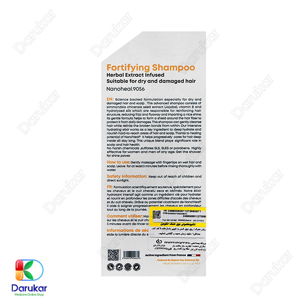 در نهایت، شامپو موی خشک و آسیبدیده نانوهیل (Nano Heal Dry and Damaged Hair Shampoo) با ترکیباتی همچون دکسپانتنول (Pro-Vitamin B5)، پروتئین هیدرولیز شده ابریشم و عصاره جوجوبا، موها را آبرسانی، تغذیه و تقویت میکند. این شامپو برای کاهش خشکی، جلوگیری از موخوره و افزایش نرمی و لطافت موهای خشک و شکننده طراحی شده است. خرید شامپو نانوهیل از داروخانه آنلاین داروکار تضمینکننده اصالت کالا، قیمت مناسب و دریافت مشاوره تخصصی برای مراقبت بهتر از مو است.