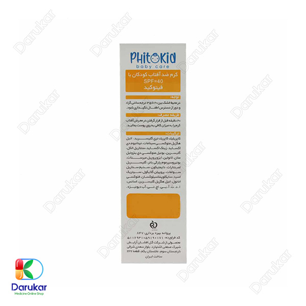 کرم ضد آفتاب کودکان فیتوکید SPF40 از داروخانه آنلاین داروکار به شما این اطمینان را میدهد که محصولی اصل، دارای مجوز بهداشتی و مناسب برای پوست حساس کودک خود تهیه میکنید. داروکار با همکاری برندهای معتبر ایرانی و خارجی، امکان خریدی مطمئن، آسان و با ارسال سریع و بستهبندی ایمن را برای والدین فراهم کرده است. این کرم ضد آفتاب کودک با فیلترهای فیزیکی زینک اکساید و تیتانیوم دیاکساید، محافظت کامل و ایمن در برابر اشعههای مضر UVA و UVB ایجاد میکند و بدون ایجاد سفیدی روی پوست، بهراحتی جذب میشود.