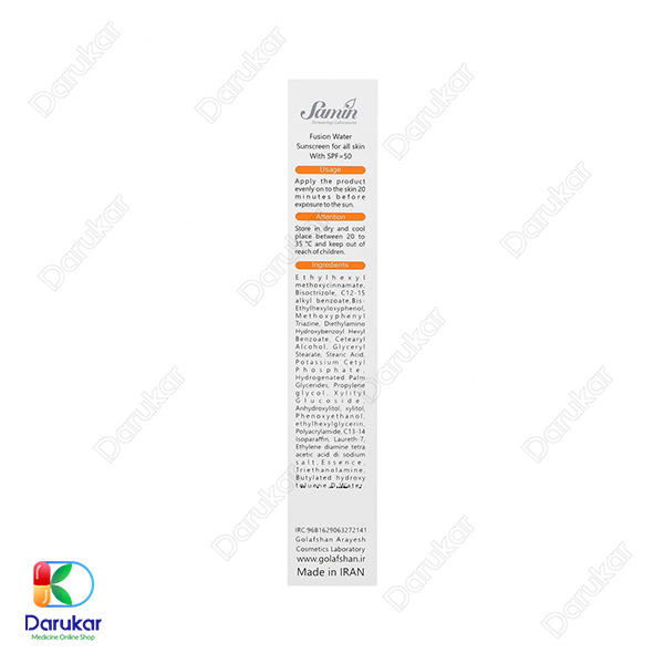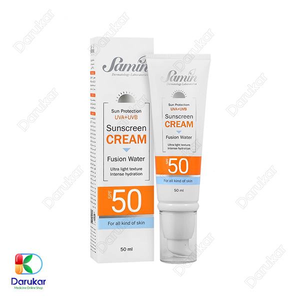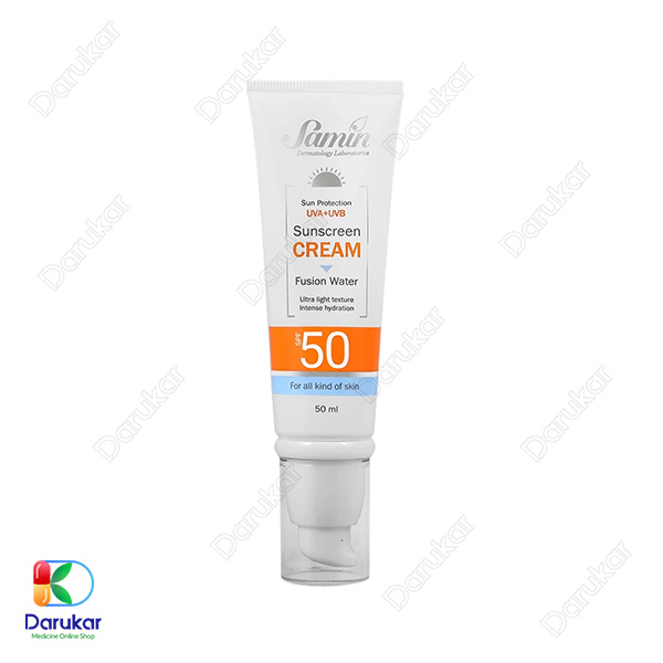 خرید و قیمت کرم ضد آفتاب فیوژن واتر انواع پوست ثمین SPF50 از داروخانه آنلاین داروکار
