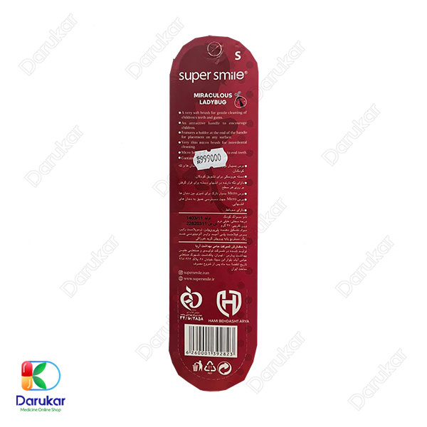 در نهایت، مسواک کودک سوپر اسمایل با برس بسیار نرم و طراحی دسته عروسکی، پاکسازی ملایم و ایمن دندانها و لثههای حساس کودکان را تضمین میکند. این مسواک با نگهدارنده ابتکاری، تجربه مسواک زدن راحت و جذاب برای کودکان فراهم میکند. خرید مسواک کودک اصل و تخصصی سوپر اسمایل از داروخانه آنلاین داروکار.