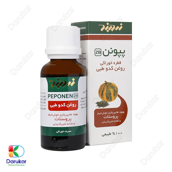 در نهایت، قطره خوراکی پپونن زردبند (Peponen Oral Drop – Pumpkin Seed Oil) یک داروی گیاهی برای درمان پروستات و مشکلات ادراری است که با مهار آنزیم 5-آلفا ردوکتاز، کاهش دیهیدروتستوسترون و بهبود عملکرد مثانه، علائم هایپرپلازی خوشخیم پروستات (BPH) را کاهش میدهد. این محصول با ترکیبات خالص روغن کدو طبی، انتخابی مطمئن برای رفع تکرر ادرار، بهبود مثانه تحریکپذیر و تقویت سلامت دستگاه ادراری مردان است.